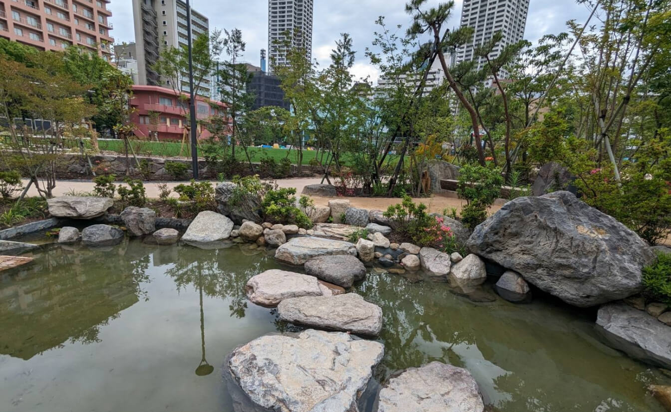 各線三宮駅、JR三ノ宮駅から海側に歩いて約5〜7分のところにある「磯上公園」が、2024年6月6日リニューアルオープン。栗栖宝一氏監修によるヒーリングガーデン作庭に森岡造園も参加しております。