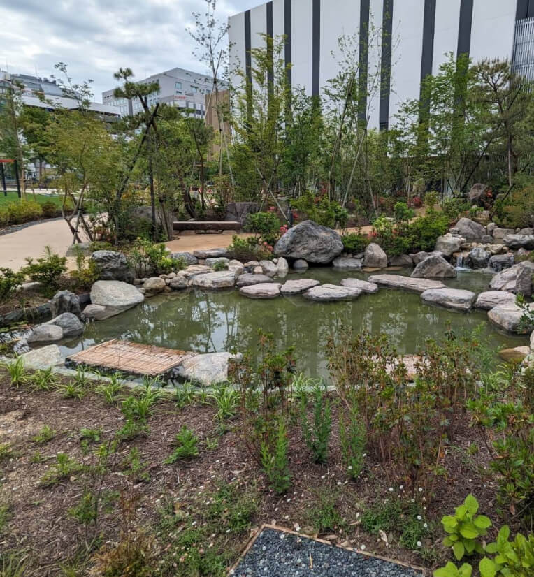 都心・三宮再整備の一環として、栗栖宝一氏監修によるヒーリングガーデン作庭に森岡造園も参加しております。